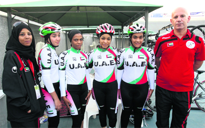 تشهد البطولة العربية للدراجات للمضمار المقامة حالياً على مضمار زايد في الشارقة الظهور الأول للمنتخب الوطني للإناث، بعد مرور أيام على إعادة تشكيله من أربع لاعبات من نادي الفجيرة، هن القوام الرسمي للمنتخب، وعلى الرغم من الفوارق الكبيرة في الاستعداد مع نظائرهن من المنتخبات العربية المشاركة في البطولة إلا أن فتيات الدراجة الإماراتية أثبتن قدرتهن على التحدي في اللعبة التي تحتاج إلى جهد كبير.
