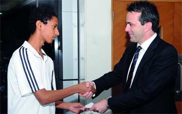 أقامت إدارة نادي الجزيرة حفل تكريم للاعب فريق الناشئين تحت 14 سنة ربيع عبدالله الجنيبي، بعد أن تم اختياره من قبل مدربي أكاديمية نادي برشلونة الاسباني للتدريب بأكاديمية النادي لمدة أسبوع واحد في معقل برشلونة في إسبانيا، بعد تألقه في التدريبات التي أقيمت بالمخيم التدريبي الذي عقدته «اتصالات» في الفترة من 13 إلى 15 مايو الماضي في أكاديمية «اتصالات» في دبي، حيث تلقى 70 لاعباً من ناشئي الكرة الإماراتية تدريباً مكثفاً على يد أمهر المدربين العالميين في مجال كرة القدم من أكاديمية نادي برشلونة. وهنأ المدير التنفيذي لنادي الجزيرة فيل أندرتون، اللاعب لحصوله على فرصة التدرب في أكاديمية برشلونة، مشدداً على أهمية اكتساب اللاعب المهارات اللازمة ليستفيد منها فريقه والمنتخب الوطني مستقبلاً.