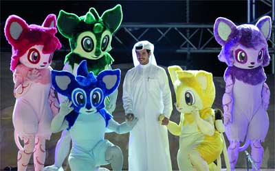 «الجربوع» تعويذة قطر لأمم آسيا كشفت قطر في حفل اقامته أول من أمس، عن التعويذة الرسمية لبطولة كأس آسيا لكرة القدم ،2011 التي تستضفيها للمرة الثانية في الفترة من 7 الى 29 يناير المقبل. وتم تصميم تعويذة البطولة على شاكلة «الجربوع»، وهو حيوان موجود في صحارى دولة قطر. وتتكون التعويذة من ثلاثة أولاد وبنتين، واستمدت شخصياتها الأسماء من مختلف مناطق قطر من الشمال والجنوب والشرق والغرب، وهي: سبوك- ولد- هو الاسم الشائع لحيوان «الجربوع» في الخليج العربي، والمعروف بالسرعة، و«تمبكي»- ولد- مسمى باسم منطقته الواقعة بشرق قطر، و«ريحة»- بنت- سميت على اسم منطقة فريحة بشمال قطر، و«كريتي»- ولد- سمي باسم منطقة زكريت بغرب قطر، و«ترينة»- بنت- سميت نسبة إلى منطقة ترينة الواقعة بجنوب قطر. وقام بتصميم التعويذة الشاب القطري أحمد المعاضيد، وظهر مع التعويذات الخمس بألوانها المختلفة على المسرح تقديراً لجهوده التي بذلها في التصميم. وقال الامين العام للاتحاد القطري والرئيس التنفيذي للجنة المحلية المنظمة سعود المهندي: «نشعر بسعادة غامرة للترحيب بأصدقائنا الخمسة على الساحة الدولية، إذ نعد الأيام ونكرس جهودنا للاستعداد لكأس آسيا». وبدوره، أكد الامين العام للاتحاد الآسيوي اليكس سوساي أن «التعويذة تحمل معاني ثقافة وتراث قطر، والحدث كبير ورائع، ويدل على العمل الشاق الذي تم بذله لانجاح الحفل في أبهى صورة».من جهته، أثنى عضو مجلس ادارة اتحاد الكرة ورئيس لجنة العلاقات العامة والاعلام راشد الزعابي على اختيار الاتحاد القطري لحيوان الجربوع ليكون تعويذة لبطولة كأس آسيا 2011 المقررة اقامتها في العاصمة الدوحة. وقال الزعابي انه لم يتوقع اختيار الجربوع، بل انه توقع اختيار المها او غيرها لتكون تعويذة، قال «الاخوان في قطر دائماً سباقون ومميزون في اختياراتهم، واختيار الجربوع كان متميزاً وكان مفاجأة سارة فعلاً». وأضاف «البطولة توحي بالنجاح منذ اليوم الذي تم فيه اختيار قطر لاستضافتها، بعد النجاح منقطع النظير لاخواننا القطريين في تنظيم بطولات كبرى سابقة، فقد سبق أن استضافت الدوحة دورة الألعاب الآسيوية قبل أربع سنوات وسط إعجاب آسيوي وعالمي». |
