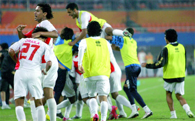 وبات الأولمبي على أعتاب إنجاز تاريخي للمرة الأولى في تاريخ الكرة الإماراتية بعد أن ضمن حصوله على الميدالية الذهبية أو الفضية، عندما يواجه نظيره الياباني في المباراة النهائية غدا الخميس. ولم ترهب الحشود الجماهيرية الهائلة التي غصت بها مدرجات ملعب «نهر السماء» في مدينة جوانزهو نجوم الأبيض، إذ نجحوا في مقارعة المنتخب الكوري الجنوبي. ويدين الأبيض في بلوغه المباراة النهائية إلى حارس مرماه علي خصيف الذي كان بارعاً في حماية مرماه من المحاولات الكورية المتواصلة في جميع أوقات المباراة التي آلت إلى شوطين إضافيين. وبعد ترقب محدود لجس النبض لم يدم خمس دقائق كاد المدافع عبدالله موسى يضع الأبيض في المقدمة، في وقت مبكر إثر تطاوله الناجح لعرضية عامر عبدالرحمن، لكن الكرة حادت عن المرمى. وظهر المنتخب الكوري في وضع ميداني جيد معتمداً على الأطراف في محاولة لاختراق التحصينات الدفاعية القوية للاعبي الأبيض الاولمبي. وأفسد علي خصيف تسديدة المدافع هونغ شول القوية بعد محاولة جماعية ممتازة (20).