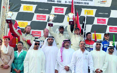 تُوج زورق (فزاع1) بقيادة الثنائي عارف الزفين ونادر بن هندي، بلقب بطولة العالم للزوارق السريعة للفئة الأولى، بعد فوزه المستحق بكأس الجولة الختامية للبطولة التي جرت، أمس، في مياه دبي.