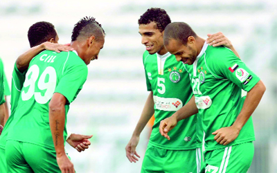 لاعبو الشباب يرقصون فرحاً بالفوز. تصوير: أسامة أبوغانم