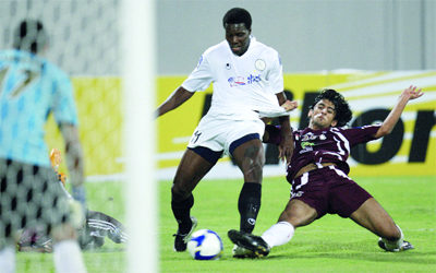 لاعب الوحدة حمدان الكمالي يقطع كرة لاعب السد تينيريو في بطولة سابقة. رويترز