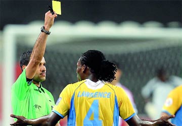 الحكم البحريني نواف شكرالله ينذر لورنس. تصوير: إريك أرازاس