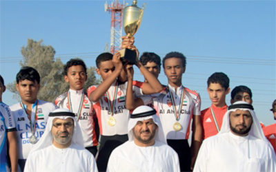 أحرز النادي الأهلي لناشئي الدراجات ذهـبية الفرق ضـد الساعة وكـأس بطـولة الامارات للفرقي ضد الساعة التي اقيمت في طريق فلج المعلا لمسافة 27 كيلومتراً، بمشاركة 11 فريقاً تمثل أندية الأهلي والنصر والامارات والعربي ومصفوت ودبا الحصن والفجيرة ورأس الخيمة ومليحة والتعاون والرمس.