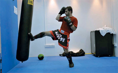 أحمد الحوسني يؤدي تدريباته استعداداً لملاقاة الأردني أبوشيخة فـــــــــــــــــــــــــــــــــي وزن 64 كيلوغراماً. الإمارات اليوم