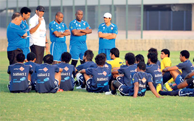 بوهندي خلال حديث سابق مع اللاعبين. الإمارات اليوم