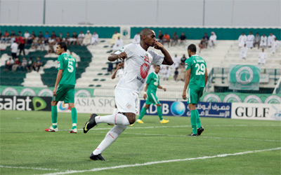مارسيلو يحتفل بتسجيله هدفاً في شباك الشباب. تصوير: دينيس مالاري