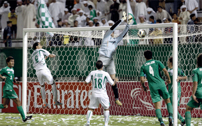 هدف الإمارات يتجاوز خط المرمى ولم يحتسبه حكم المباراة. تصوير: أسامة أبوغانم