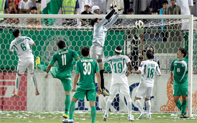 هدف لم يحتسب للإمارات يظهر في الصورة. أ.ف.ب