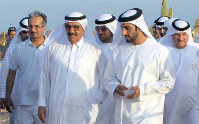 حمدان بن راشد لدى زيارته إلى جزيرة صير بونعير أمس. من المصدر