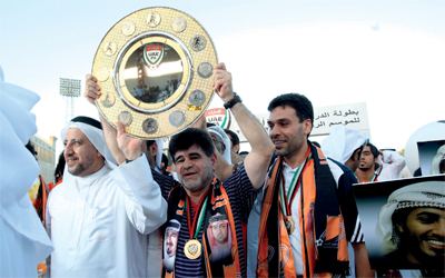 عبدالوهاب يرفع درع الهواة مع عجمان. تصوير: مصطفى قاسمي