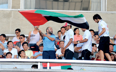 جمهور المنتخب الأولمبي آزر نجوم الأبيض في بيونغ يونغ. من المصدر