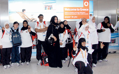 بعثة الأولمبياد الإماراتي الخاص لـــــــــــــــــــــــــــــــــــدى وصولها إلى مطار أثينا. من المصدر