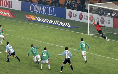 هدف الأرجنتيني أغويرو الرائع في مرمى بوليفيا فجر أمس. رويترز