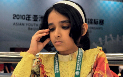 رئيس الجالية السودانية وموزة المنصوري في لقاء شطرنج