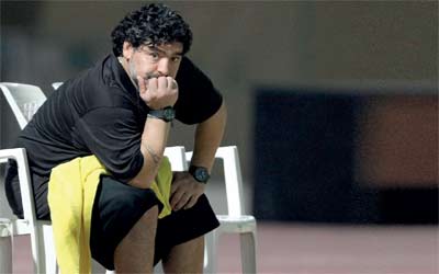 مارادونا يستعدّ للظهور الرسمي في المنطقة الفنية الوصلاوية. تصوير: أسامة أبوغانم