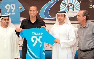 أعلن نادي بني ياس رسميا تعاقده مع المهاجم الدولي الفرنسي ديفيد تريزيغيه (34 عاما) لمدة موسم واحد مقابل مليون و800 ألف دولار، جاء ذلك خلال المؤتمر الصحافي الذي عقده النادي ظهر أمس بفندق شاطئ الراحة بالعاصمة أبوظبي بحضور نائب رئيس مجلس إدارة النادي سيف الخييلي ومسؤول الاتصال الخارجي المتحدث الرسمي مسعد الحارثي والمدير الفني لفريق بني ياس، البرازيلي جوفان فييرا وممثل شركة بني ياس للاستثمار نادر المزروعي، الشركة الراعية للنادي، وسيحمل اللاعب الفرنسي القميص رقم .99 وقال الخييلي إن «وجود الفرنسي تريزيغيه بما يملكه من خبرة طويلة ومكانة دولية معروفة سيكون إضافة قوية لخط هجوم الفريق بجوار سينغاهور وصانع الألعاب فوزي بشير، ونأمل أن يوفق اللاعب في تقديم عصارة جهده وخبراته الطويلة لمصلحة الفريق». وأضاف ان «النادي بصدد التفاوض مع خمسة لاعبين مدافعين من تونس والجزائر والمغرب وكوريا والأرجنتين لاختيار أحدهم لتدعيم خط الدفاع، وستحسم هذه المفاوضات خلال 10 أيام على الأكثر بعد تعثر مفاوضاتنا مع الجزائري رفيق حليش».