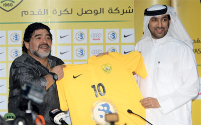 وقال رئيس مجلس ادارة شركة الوصل لكرة القدم مروان بن بيات خلال المؤتمر الصحافي الذي عقد ظهر امس بحضور الاسطورة مارادونا ان القميص رقم 10 في الوصل لن يرتديه احد في النادي طالما كان مارادونا موجودا في قلعة الفهود، واشار بن بيات الى ان هناك خطة تسويقية يسعى النادي الى تنفيذها تقوم على تسويق قميص الوصل الذي يحمل الرقم 10 ومكتوب عليه اسم مارادونا داخليا وخارجيا.