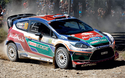 حقق سائق فريق أبوظبي فورد، الشيخ خالد القاسمي، انجازاً عربياً كبيراً بحصوله على المركز الخامس في الجولة العاشرة من بطولة العالم للراليات، التي اختتمت نهاية الأسبوع الماضي في أستراليا، ليصبح القاسمي السائق العربي الأول الذي يحقق هذا الانجاز في تاريخ البطولة. وتصدر فريق أبوظبي فورد رالي أستراليا بعد حصول سائقيه ميكو هيرفونن وياري ماتي لاتفالا عليى المركزين الأول والثاني على التوالي، إذ حقق هيرفونن الفوز الثالث له في أستراليا، وتمكن من الاقتراب 15 نقطة من منافسه التقليدي الفرنسي سبيستيان لوب في البطولة. وقال الشيخ خالد القاسمي «حققنا انجازاً تاريخياً لمسيرة أبوظبي في رياضة السيارات، وتمكنا عبر أربع سنوات متتالية من إثبات قدرتنا على المنافسة العالمية في بطولة العالم للراليات».