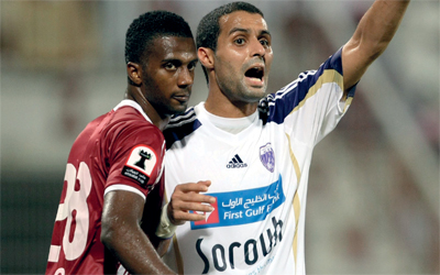 القحطاني (يمين) وعيسى أحمد خلال المباراة. تصوير: أسامة أبوغانم