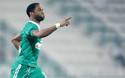 سرور سالم أسهم في هدف الشباب الثاني أمام العربي. تصوير: أسامة أبوغانم