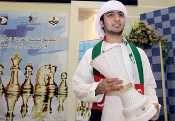 سالم عبدالرحمن متوجاً بلقب النخبة العربية للشطرنج. تصوير: أشوك فيرما
