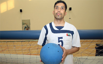 يقضي المواطن الكفيف محمد غريب الحوسني، أكثر من خمس ساعات يومياً في تدريبات متواصلة على لعبة «كرة الجرس»، وهي لعبة أشبه بمباريات كرة القدم، لكنها مخصصة لمتحدي الإعاقة البصرية.