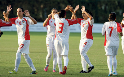 لاعبات الإمارات تغلبن على لبنان 5-صفر. تصوير: إريك أرازاس