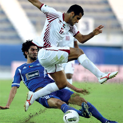 علي عباس يقطع الكرة من أمام سعيد الكثيري. تصوير:أسامة أبوغانم
