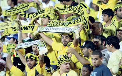 جمهور الوصل ينتظر مباراة الجزيرة بحرارة. تصوير: أسامة أبوغانم