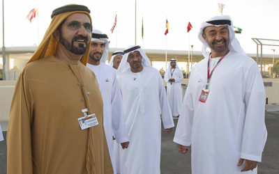 شهد صاحب السمو الشيخ محمد بن راشد آل مكتوم، نائب رئيس الدولة رئيس مجلس الوزراء حاكم دبي، وأصحاب السمو أعضاء المجلس الأعلى حكام الإمارات، والفريق أول سمو الشيخ محمد بن زايد آل نهيان، ولي عهد أبوظبي نائب القائد الأعلى للقوات المسلحة، وسمو أولياء العهود، اختتام سباق جائزة الاتحاد للطيران الكبرى الـ«فورمولا 1»، في نسختها الثالثة، التي جرت مساء أمس على حلبة مرسى ياس، بحضور ملك إسبانيا خوان كارلوس الأول، ورئيس جنوب افريقيا جاكوب زوما، ورئيس غينيا الفا كوندي، ورئيس رواندا بول كاغامي، ورئيس الغابون علي بونغو اونديمبا، ورئيس سيشل جيمس اليكس مايكل، ورئيس الشيشان رمضان قاديروف.