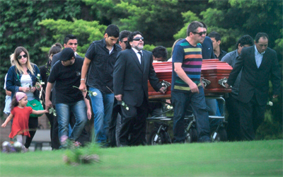 مارادونا لدى مشاركته في مراسم دفن والدته في الأرجنتين. إي.بي.إيه