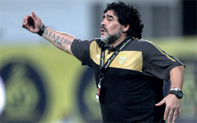 مارادونا فاجأ الجميع بقيادة الفريق. تصوير: أسامة أبوغانم
