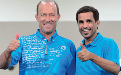 كالديرون (يسار) قاد تدريبات بني ياس وإلى جواره فريد علي. من المصدر