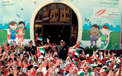 عاش النجمان العالميان عارف الزفين ونادر بن هندي فرحة خاصة وهما يحتفلان بمناسبة اليوم الوطني الـ40 في مباني روضة الربيع في جميرا مع أكثر من 200 طفل وطفلة، تزينوا باللباس الوطني الجميل وسط فرحة خاصة، تبعها مسيرة للطاقم الإداري ومنتسبي الروضة احتفالاً بالمناسبة العزيزة على قلوب الجميع.