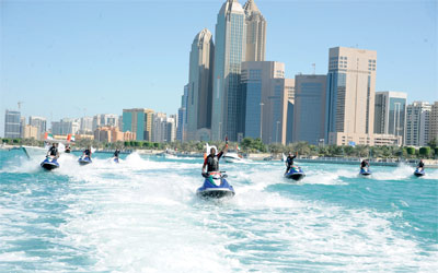 مسيرة الولاء بالدراجات المائية تصل إلى أبوظبي