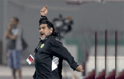مارادونا مستاء من أداء لاعبيه خلال مباراة الوحدة. تصوير: إريك أرازاس