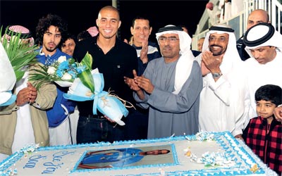 وقدم المهيري هدية تذكارية لتريزيغيه و«كعكة» كبيرة مرسومة عليها صورة اللاعب وهو يرتدي القميص رقم ،99 الذي لعب به تريزيغيه بعض المباريات مع بني ياس قبل رحيله.