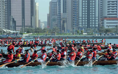 يتنافس ما يزيد على 1000 بحار إماراتي قبالة كورنيش العاصمة الإماراتية اليوم في سباق أبوظبي لقوارب التجديف التقليدية، الذي ينظمه نادي تراث الإمارات تحت رعاية سمو الشيخ سلطان بن زايد آل نهيان، ممثل صاحب السمو رئيس الدولة، رئيس نادي تراث الإمارات. أأويشهد السباق أربعة أشواط يفصل بين كل منها 20 دقيقة في الفترة من 3.30 مساءً إلى 4.30 مساءً، على أن يصطف 16 أو 17 قارباً فئة 40 قدماً مصنوعاً من الخشب بالكامل عند كل نقطة انطلاق. وتحمل الأشواط أسماء: الأحمر والأخضر والأبيض والأسود، ألوان العلم الإماراتي. ويتحتم ألا يزيد عدد المشاركين على كل قارب عن 17 متسابقاً. أويمتد مسار السباق