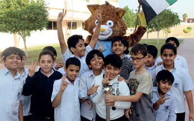 تعويذة البطولة «القط ماهر» تزور المدارس المشاركة. من المصدر