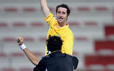 خلعتبري تسبّب في ضربة جزاء لمصلحة الوصل ضد الأهلي. تصوير: أسامة أبوغانم