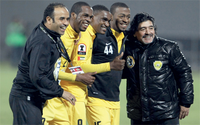 قال المدير الفني لفريق الكرة بنادي الوصل، الأرجنتيني دييغو مارادونا، إن فريقه قدم مباراة جيدة جداً أمام الوحدة أول من أمس في الجولة الثامنة من بطولة كأس اتصالات، واستحق الفوز 2-،1 وكشفت له المباراة عمن يستحق الاستمرار مع الإمبراطور في الفترة المقبلة ممن لا يستحق، وأنه تعمد الدفع بالكثير من الوجوه الجديدة في اللقاء حتى يتأكد من إمكاناتهم وأحقيتهم بالاستمرار مع الفريق.