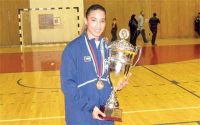 أمل بن حيدر تحمل كأس الاتحاد في بطولة سابقة. من المصدر