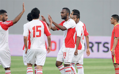 لاعبو المنتخب سعيدون بعد الفوز العريض على فلسطين. الإمارات اليوم