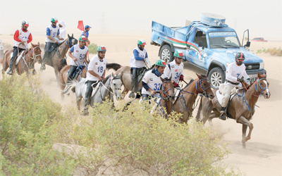 محمد بن راشد يتقدم فرسان الإمارات في سباق تحدي العمالقة. الإمارات اليوم