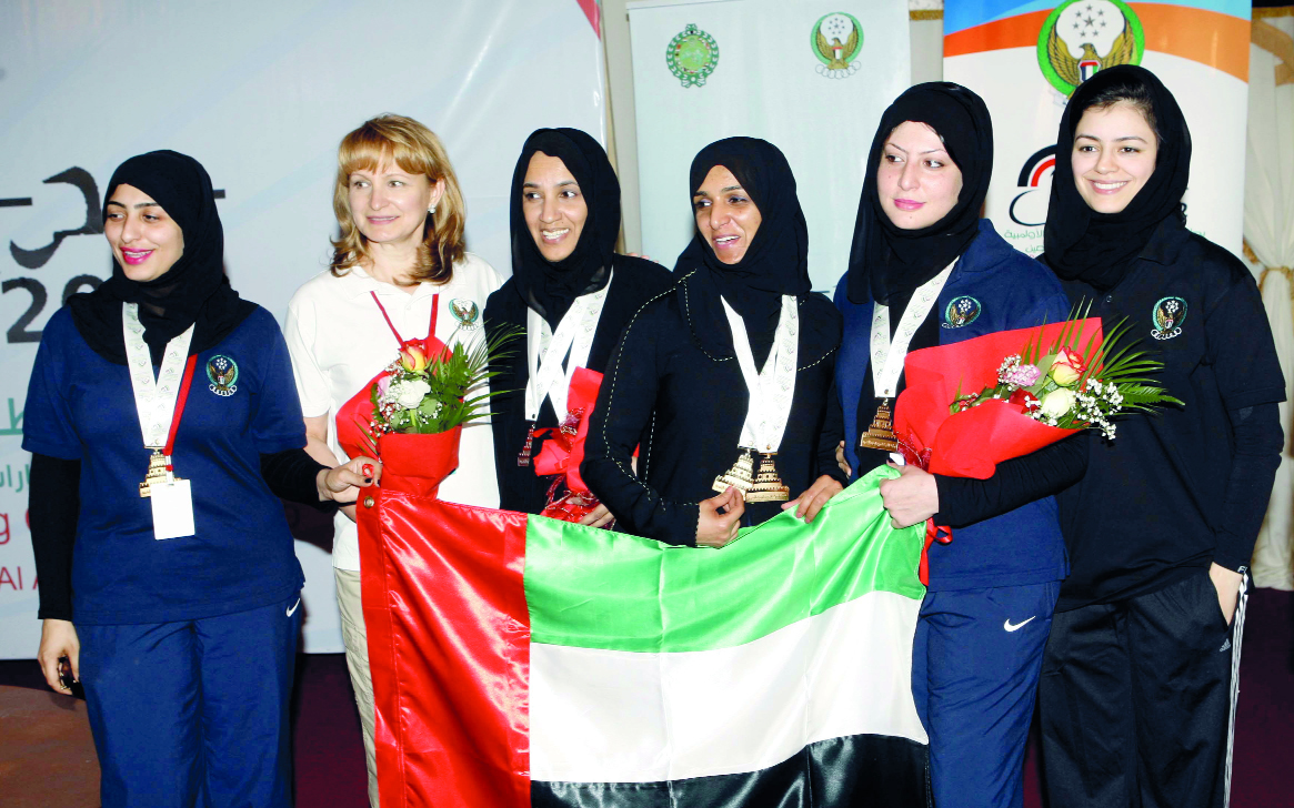 سمية صالح تتوسط فريق الإمارات المتوج بالذهب. من المصدر