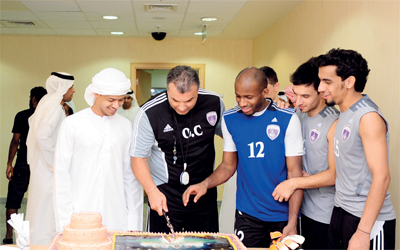 احتفال مُصغر بين لاعبي العين وشاعر «عشرة على عشرة»