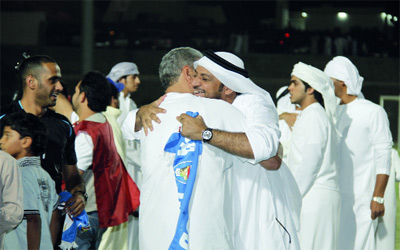 الضنحاني (يسار) يحتفل بصعود دبا الفجيرة إلى الأضواء. من المصدر