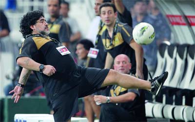 مارادونا يأمل بتحقيق لقب بطولة للوصل في الموسم الحالي. تصوير: إريك أرازاس